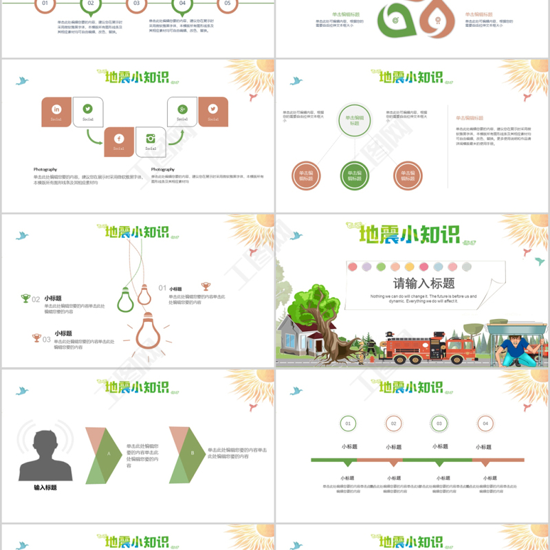 工圖網提供卡通簡約地震小知識防震減災日PPT供會員免費下載。更多精彩黨課PPT素材,盡在工圖網。
