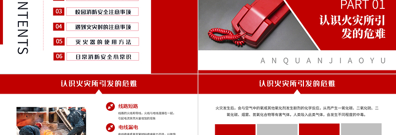 2021校園消防安全PPT簡潔大氣校園學生安全教育提升師生消防安全意識和自防自救能力教學課件模板