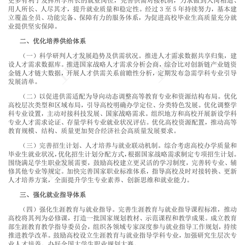 普通高等學(xué)校(以下簡稱高校)畢業(yè)生是黨和國家寶貴的人才資源。為加快構(gòu)建高校畢業(yè)生高質(zhì)量就業(yè)服務(wù)體系,暢通教育、科技、人才良性循環(huán),經(jīng)黨中央、國務(wù)院同意,現(xiàn)提出如下意見。
