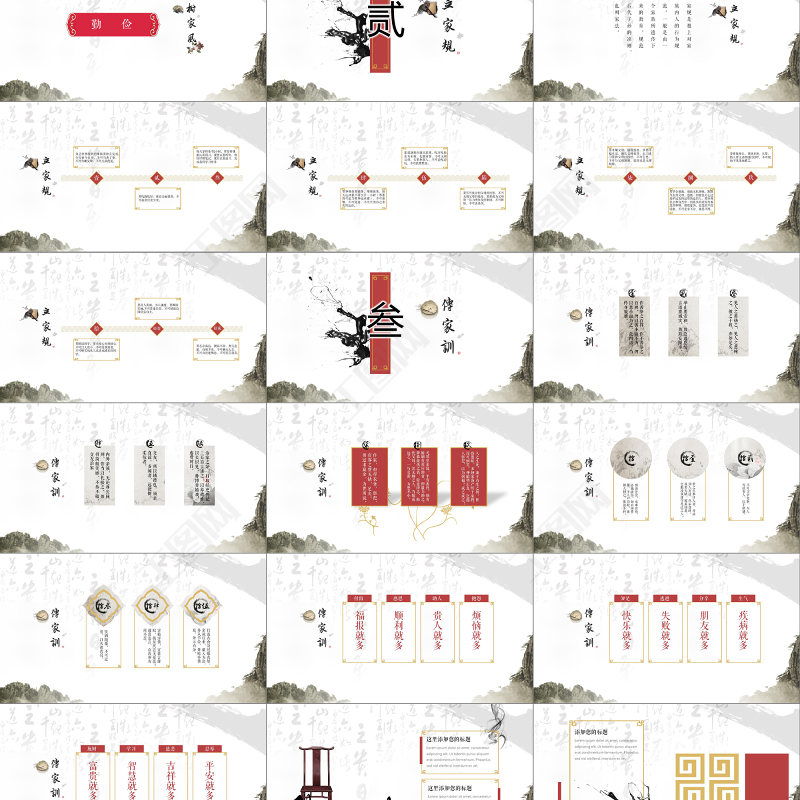 工圖網提供中國風古典雅致禮儀文化家訓家風家規PPT模板供會員免費下載。更多精彩黨課PPT素材,盡在工圖網。
