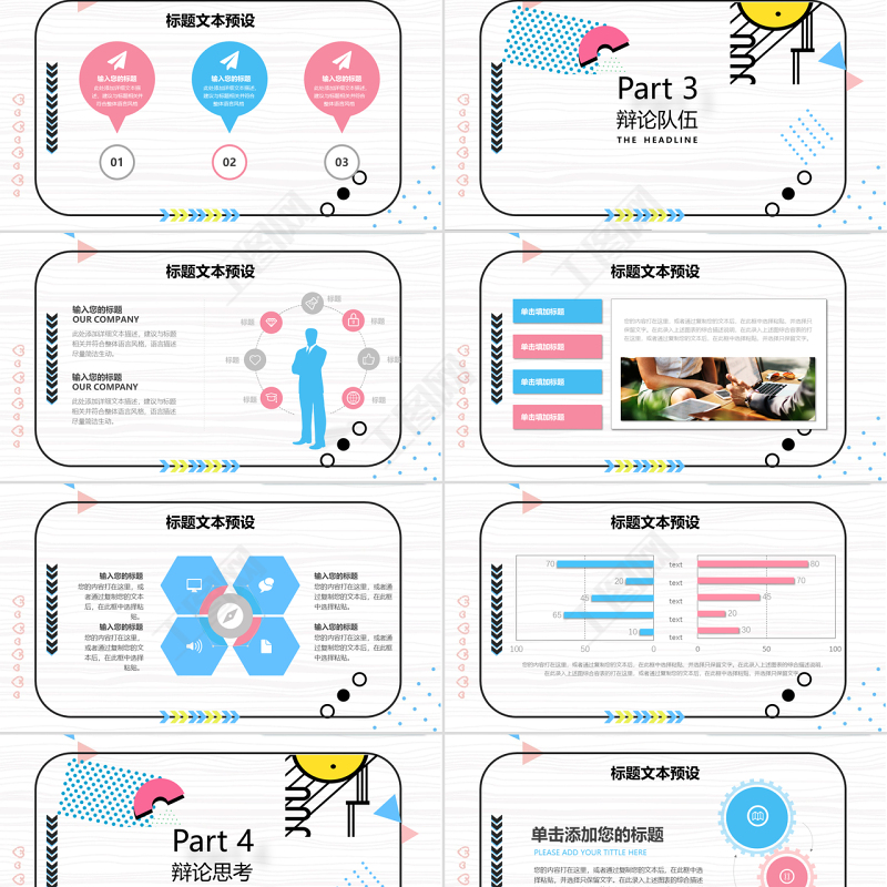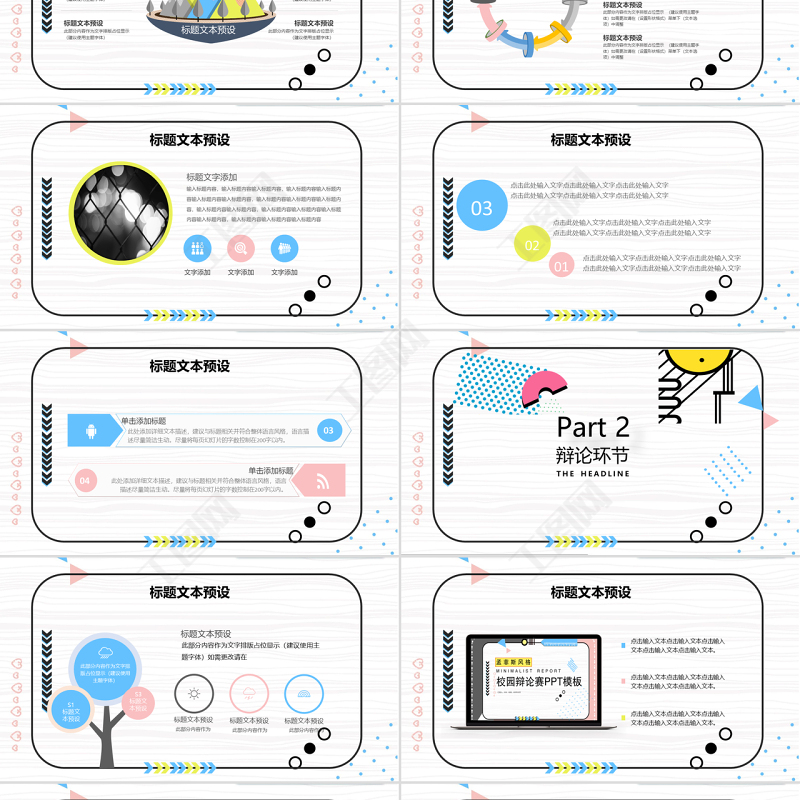 孟菲斯風(fēng)格校園辯論賽PPT模板