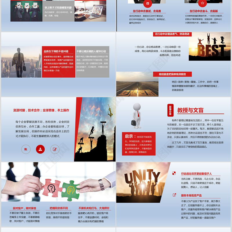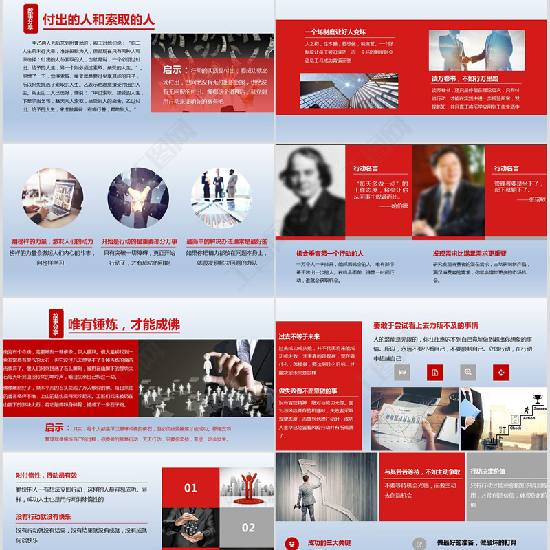 用榜樣的力量,激發人們的動力開始是行動的最重要部分萬事最簡單的解決辦法通常是最好的榜樣的力量會激起人們內心的斗志,向榜樣學習只有突破一切障礙,真正開始行動了,才有成功的可能如果你把精力都放在問題本身上,就很發現解決問題的辦法