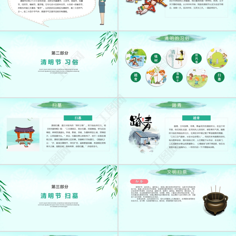 工圖網(wǎng)提供綠色清新卡通插畫清明節(jié)主題班會(huì)PPT供會(huì)員免費(fèi)下載。更多精彩黨課PPT素材,盡在工圖網(wǎng)。