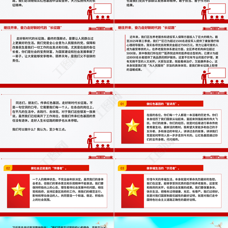 工圖網提供傳承紅色基因走好新時代長征路PPT黨課供會員免費下載。更多精彩黨課PPT素材,盡在工圖網。