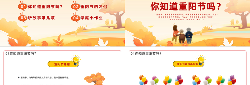 2022重陽節PPT橙色卡通風幼兒園童心敬老愛在重陽主題班會課件模板 Array