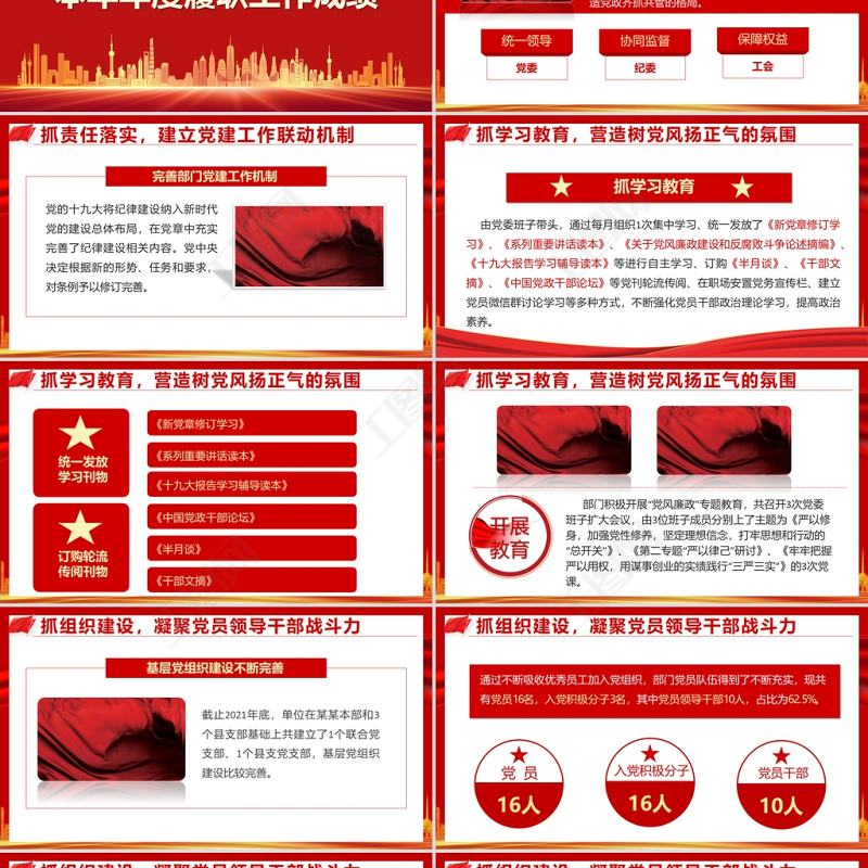 工圖網提供基層黨支部述職匯報PPT紅色簡約大氣風機關單位2022年度專題黨課課件模板供會員免費下載。更多精彩黨課PPT素材,盡在工圖網。