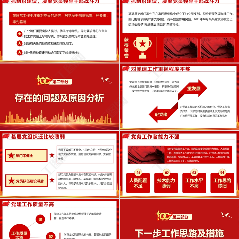 基層黨支部述職匯報PPT紅色簡約大氣風機關單位2022年度專題黨課課件模板 Array