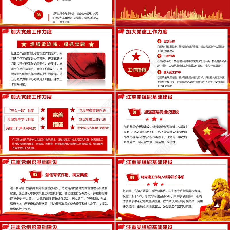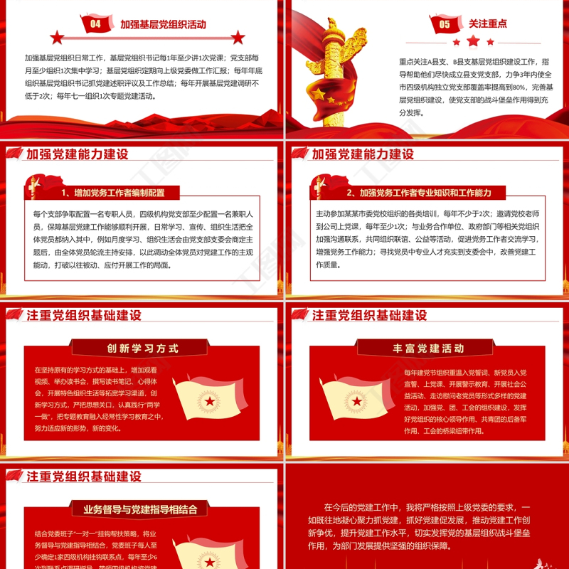 注重黨組織基礎建設關注重點重點關注A縣支、B縣支基層黨組織建設工作,指導幫助他們盡快成立縣支黨支部,力爭3年內使全市四級機構獨立黨支部覆蓋率提高到80%,完善基層黨組織建設,使黨支部的戰斗堡壘作用得到充分發揮。