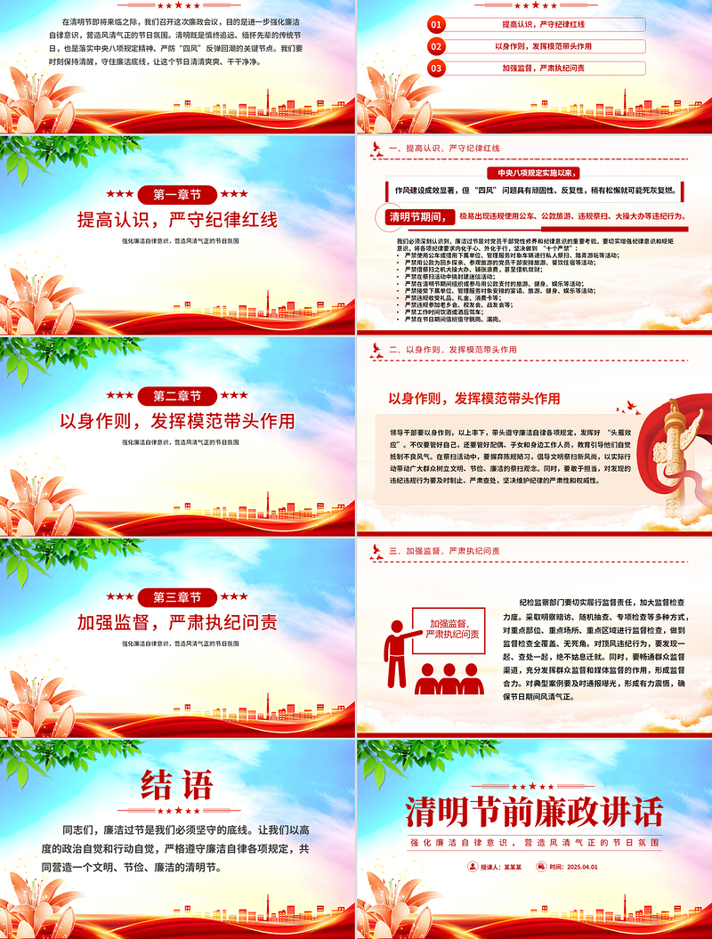 2025清明節前廉政講話PPT黨員干部強化廉潔自律意識黨課 Array