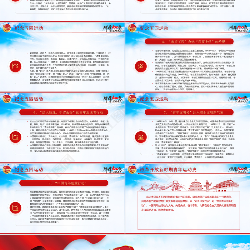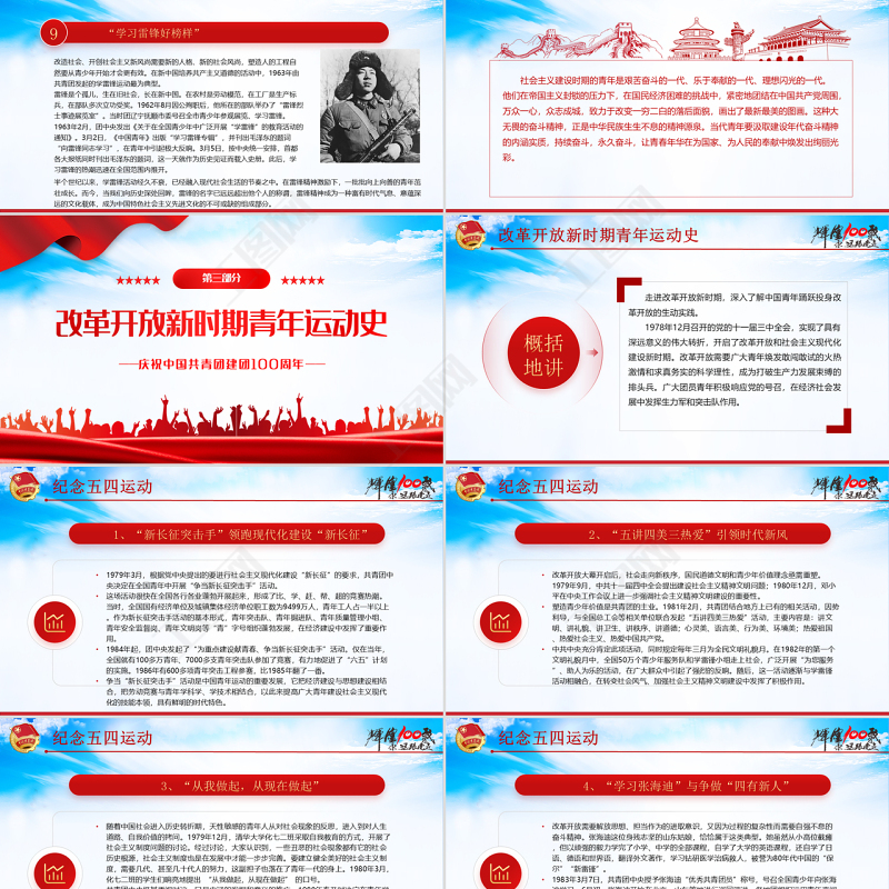 中國青年運動史PPT紅色黨建風(fēng)中國共青團(tuán)成立100周年弘揚五四精神揮灑熱血青春專題團(tuán)課 Array