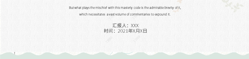 FRESH匯報人:XXX時間:2021年X月X日立夏小清新模板POWERPOINTBut what plays the mischief with this masterly code is the admirable brevity of it, which necessitates a vast volume of commentaries to expound it.