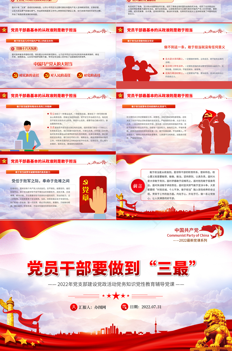 工圖網提供黨員干部要做到三最PPT黨建風2022年黨支部建設黨政活動黨性教育課件模板供會員免費下載。更多精彩黨課PPT素材,盡在工圖網。