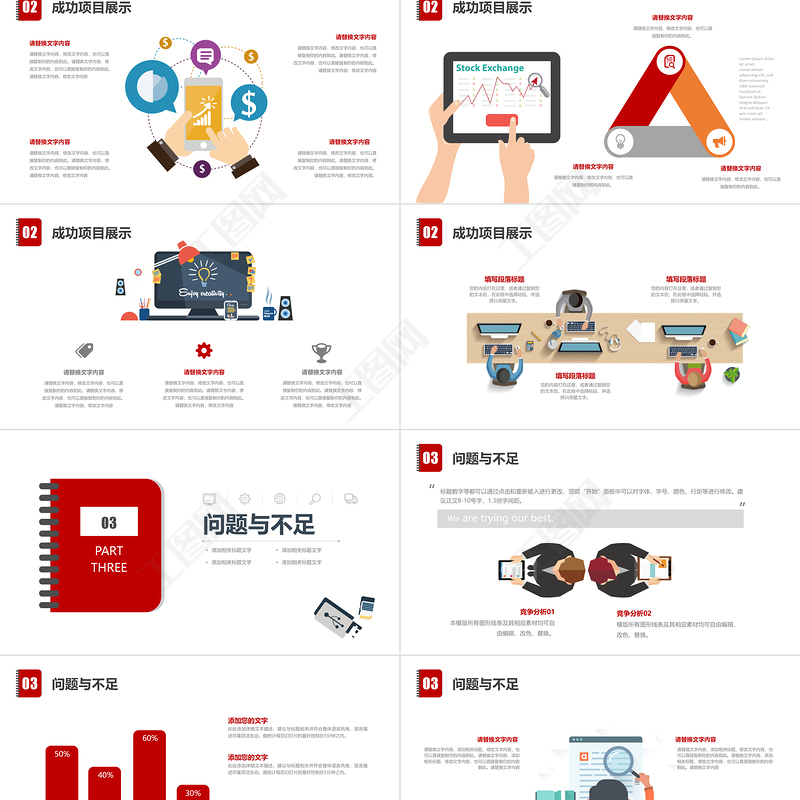 競爭分析01本模版所有圖形線條及其相應素材均可自由編輯、改色、替換。競爭分析02模版所有圖形線條及其相應素材均可自由編輯、改色、替換。問題與不足
