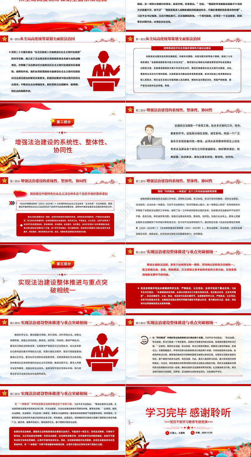 2022推進全面依法治國必須堅持系統觀念PPT大氣黨建風黨員干部學習教育專題黨課黨建課件 Array