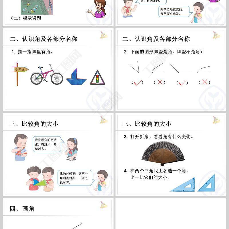 工圖網提供 角的初步認識認角比較角的大小畫角PPT模板供會員免費下載。更多精彩黨課PPT素材,盡在工圖網。