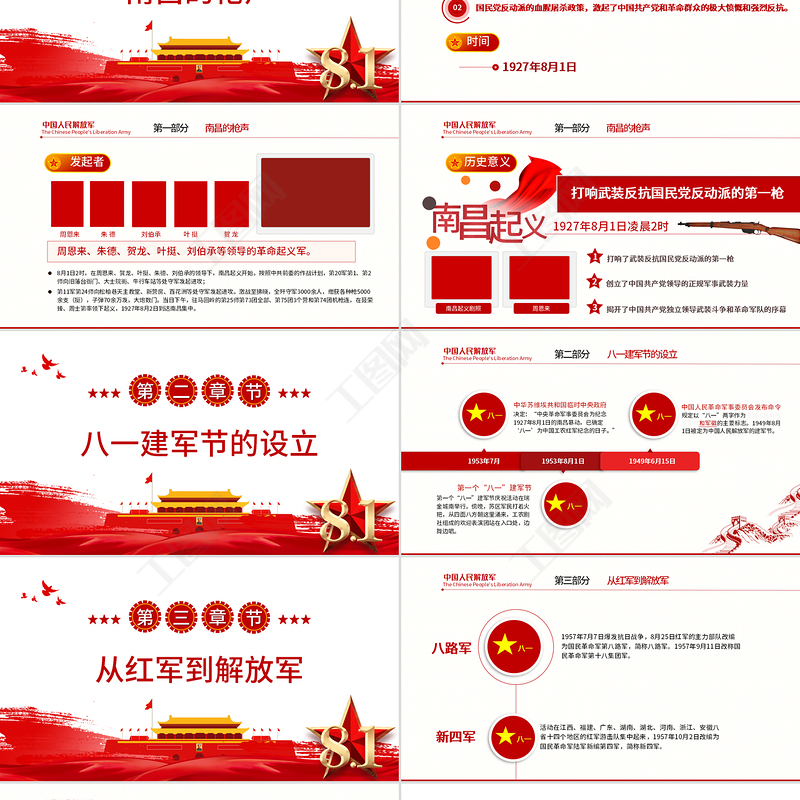 工圖網提供紀念八一建軍節PPT紅色大氣風2022年建軍節95周年愛國主義授課輔導國防教育專題黨課課件模板供會員免費下載。更多精彩黨課PPT素材,盡在工圖網。