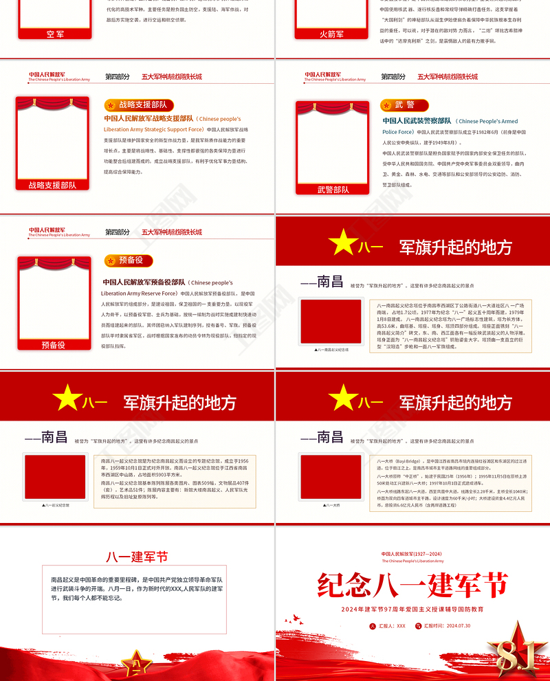 紀念八一建軍節PPT紅色大氣風2022年建軍節95周年愛國主義授課輔導國防教育專題黨課課件模板
