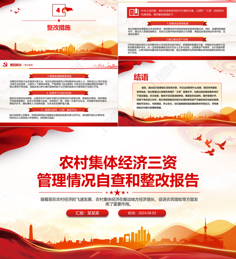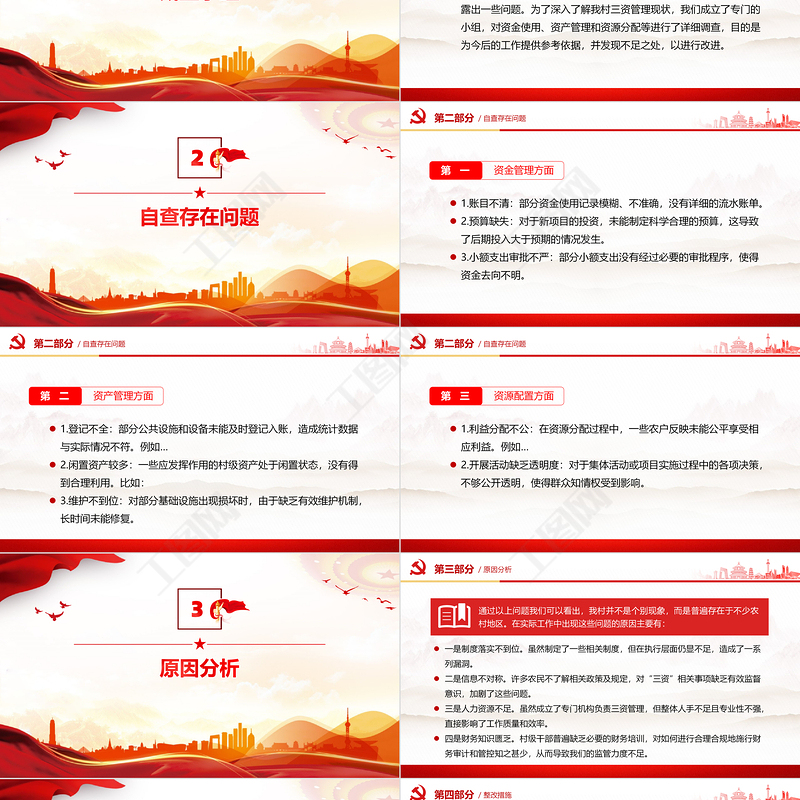 工圖網提供農村集體經濟三資管理情況自查和整改報告PPT模板供會員免費下載。更多精彩黨課PPT素材,盡在工圖網。