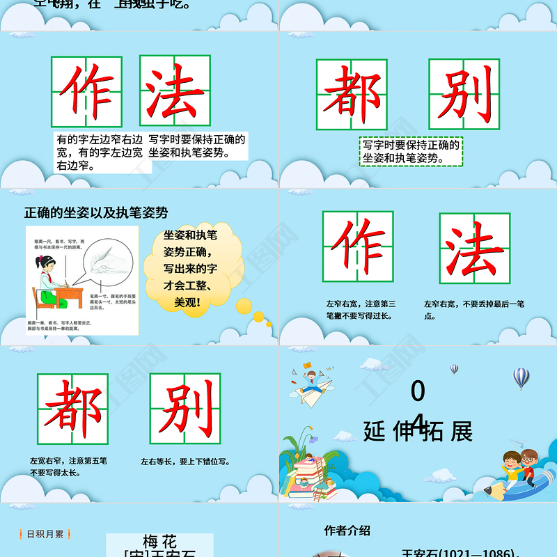 有的字左邊窄右邊寬,有的字左邊寬右邊窄。寫字時要保持正確的坐姿和執筆姿勢。