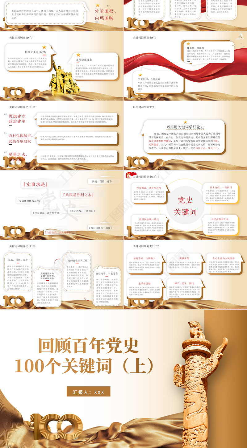 2021建黨100周年回顧百年黨史100個關鍵詞PPT模板(上) Array