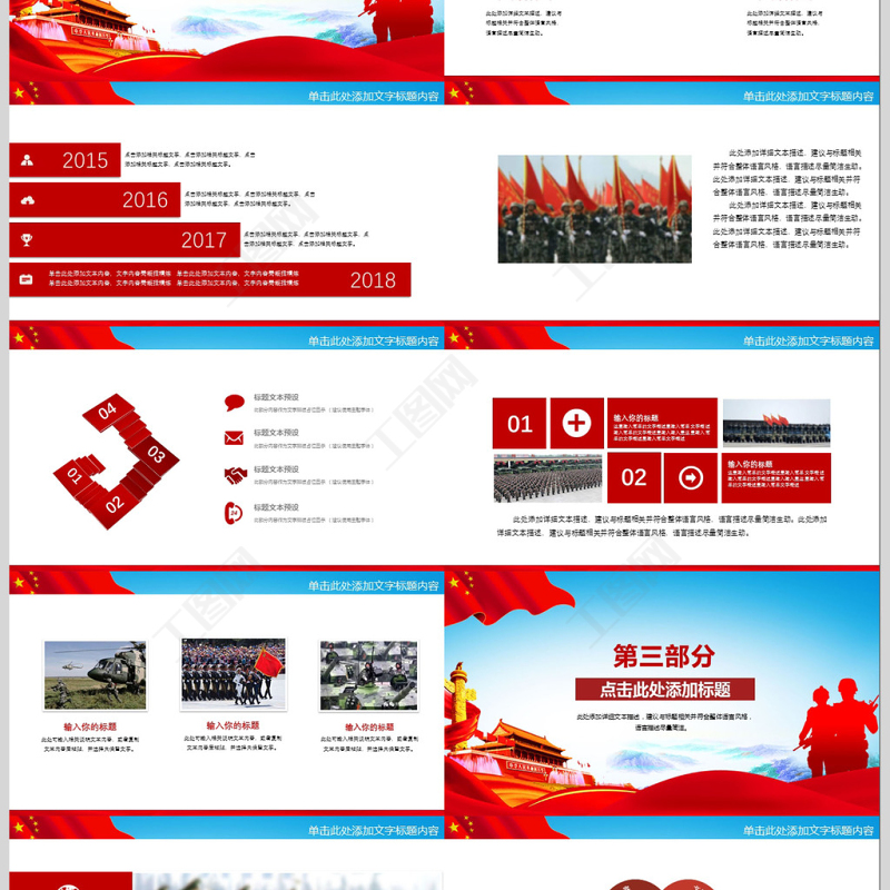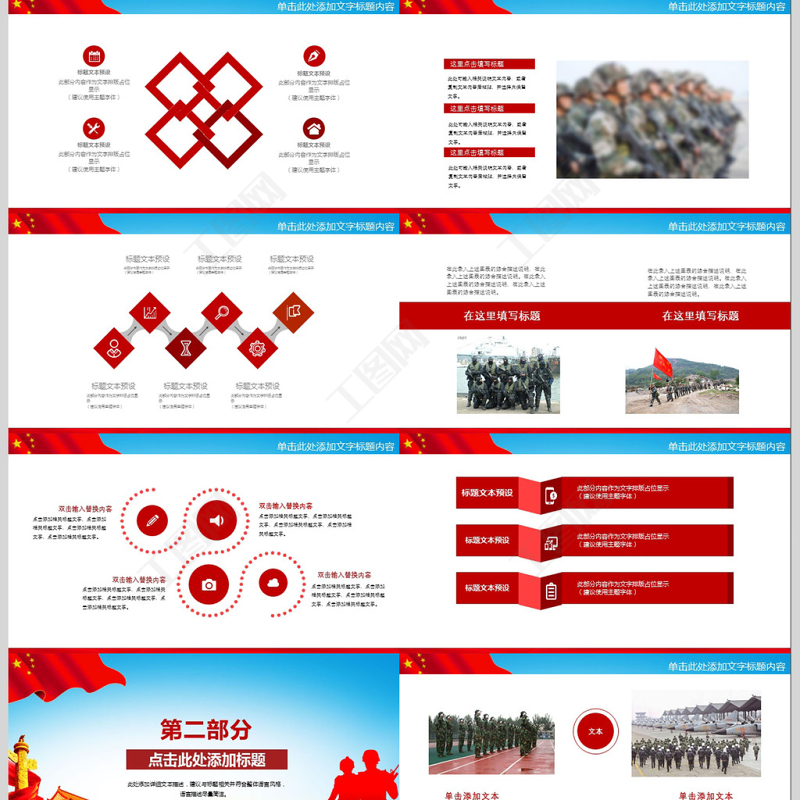 工圖網(wǎng)提供軍隊(duì)部隊(duì)軍事國(guó)防教育活動(dòng)PPT模板供會(huì)員免費(fèi)下載。更多精彩黨課PPT素材,盡在工圖網(wǎng)。