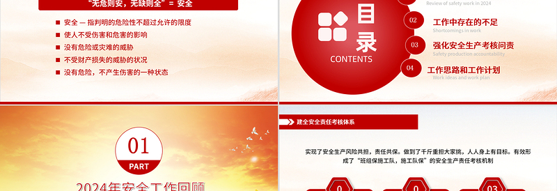 2024年安全工作回顧Review of safety work in 2024工作中存在的不足Shortcomings in work強化安全生產考核問責Safety production accountability工作思路和工作計劃Work ideas and work plan