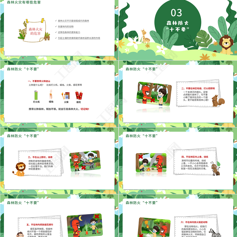 工圖網提供森林防火PPT綠色卡通預防森林火災保護森林人人有責消防安全教育課件供會員免費下載。更多精彩黨課PPT素材,盡在工圖網。
