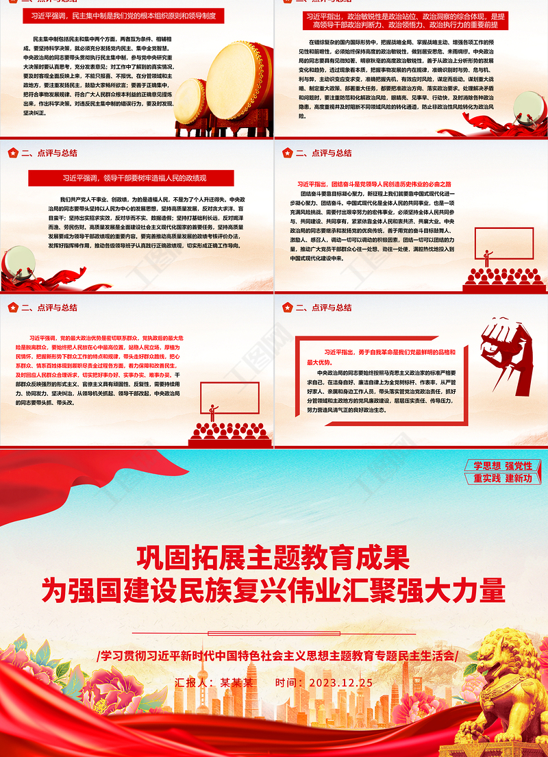鞏固拓展主題教育成果 為強(qiáng)國(guó)建設(shè)民族復(fù)興偉業(yè)匯聚強(qiáng)大力量/學(xué)習(xí)貫徹習(xí)近平新時(shí)代中國(guó)特色社會(huì)主義思想主題教育專(zhuān)題民主生活會(huì)/匯報(bào)人:某某某 時(shí)間:2023.12.25