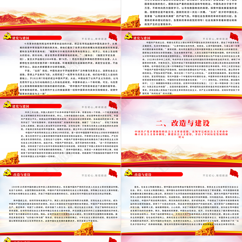 任何社會(huì)在運(yùn)行過程中,都不可避免地會(huì)發(fā)生一系列變革與變遷。自政黨政治產(chǎn)生以來,社會(huì)的變遷便離不開代表一定階級和階層利益的政黨所主導(dǎo)。中國共產(chǎn)黨是近代中國社會(huì)深刻變遷的進(jìn)步產(chǎn)物,是最先進(jìn)的新型革命政黨。它的產(chǎn)生,使20世紀(jì)中國社會(huì)變革走向社會(huì)主義的正確方向。 眾所周知,中華民族曾是世界上偉大的民族,但從18世紀(jì)特別是19世紀(jì)以來,由于封建專制主義統(tǒng)治和帝國主義列強(qiáng)的侵略,中國大大地落后了,逐漸演變成為任人宰割的半殖民地半封建社會(huì),山河破碎,生靈涂炭,苦難深重。為了挽救國家和民族的危亡,擺脫日益嚴(yán)重的民族壓迫和專制統(tǒng)治,中國先進(jìn)分子曾千辛萬苦、不斷地向西方國家學(xué)習(xí),以尋找救國救民的真理,探索中國發(fā)展富強(qiáng)的道路,但理想總是不能實(shí)現(xiàn),國家的狀況一天比一天糟。“五四”前夕的中國社會(huì),籠罩著“山雨欲來風(fēng)滿樓”的嚴(yán)峻氣氛。中國社會(huì)急需新的革命階級的興起,急需新的革命理論的指引,急需新的革命政黨的領(lǐng)導(dǎo)!社會(huì)發(fā)展孕育著新理論和新政黨產(chǎn)生的主客觀條件。不忘初心,繼續(xù)前進(jìn) 建黨與建國