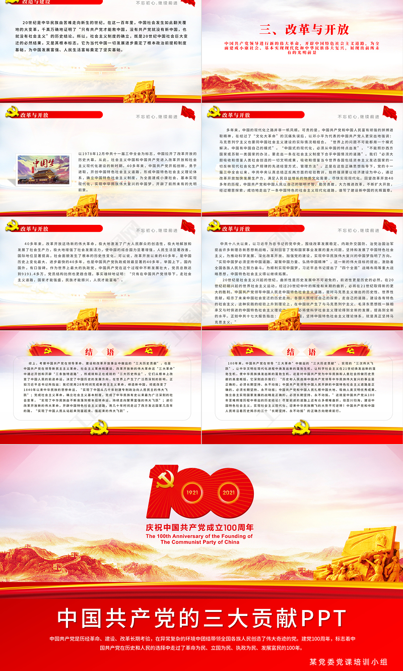 2021結(jié)合百年黨史談?wù)勚袊伯a(chǎn)黨的三大貢獻(xiàn)學(xué)黨史PPT模板