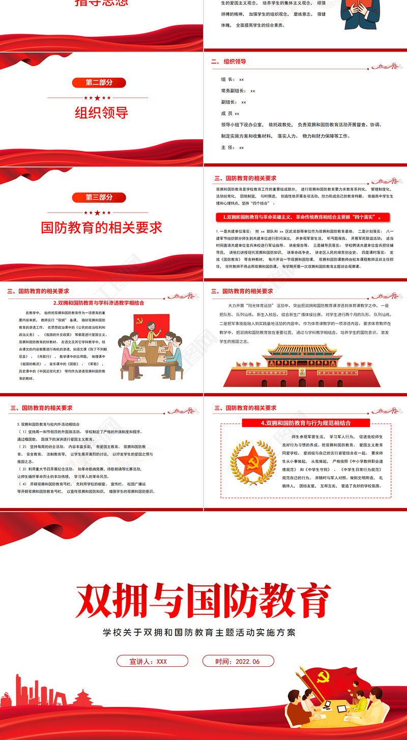 工圖網提供雙擁與國防教育PPT簡潔精美學校關于雙擁和國防教育主題活動實施方案課件供會員免費下載。更多精彩黨課PPT素材,盡在工圖網。