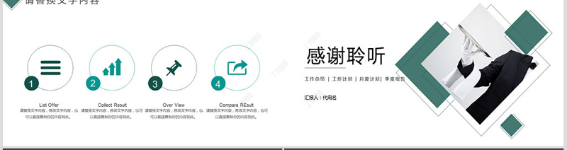 感謝聆聽匯報人:代用名工作總結 | 工作計劃 | 月度計劃| 季度報告