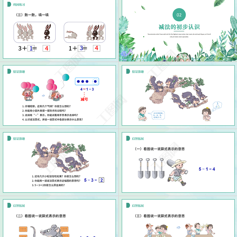 啟智拓展(一)看圖說一說算式表示的意思5-1=4