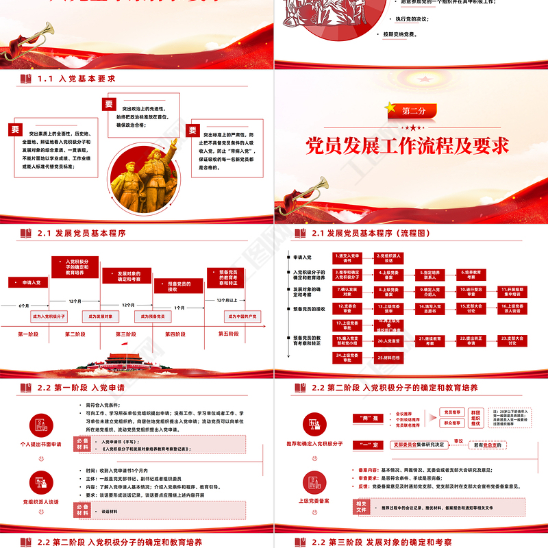 2022黨員發(fā)展工作全流程PPT黨政風(fēng)入黨流程黨員發(fā)展工作全流程課件模板 Array