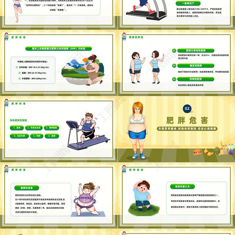 工圖網提供2023世界防治肥胖日PPT卡通風合理營養膳食世界防治肥胖日知識宣講課件模板供會員免費下載。更多精彩黨課PPT素材,盡在工圖網。