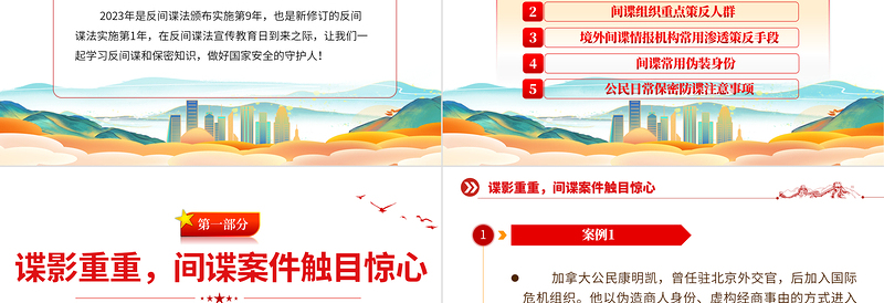 反間諜法宣傳日PPT紅色簡潔牢記保密防諜常識做國家安全的守護人宣教課件 Array