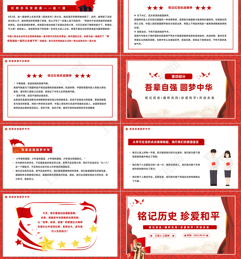 工圖網(wǎng)提供2023銘記歷史勿忘國恥九一八事變PPT紅色黨政風(fēng)吾輩自強圓夢中華勿忘九一八課件模板供會員免費下載。更多精彩黨課PPT素材,盡在工圖網(wǎng)。