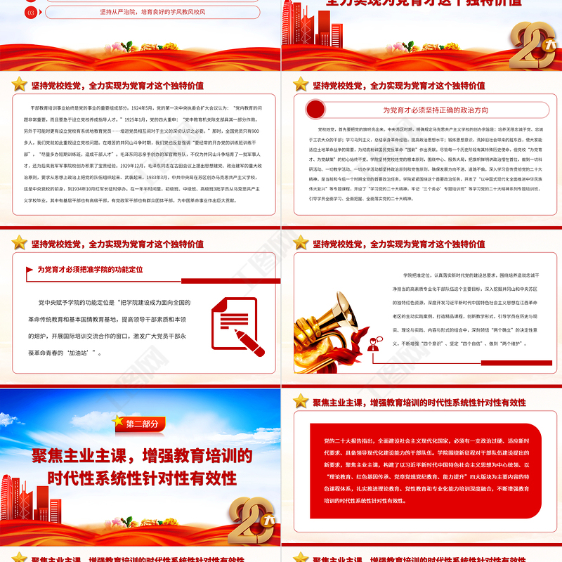 堅(jiān)持黨校姓黨,全力實(shí)現(xiàn)為黨育才這個(gè)獨(dú)特價(jià)值目錄CONTENTS聚焦主業(yè)主課,增強(qiáng)教育培訓(xùn)的時(shí)代性系統(tǒng)性針對(duì)性有效性堅(jiān)持從嚴(yán)治院,培育良好的學(xué)風(fēng)教風(fēng)校風(fēng)