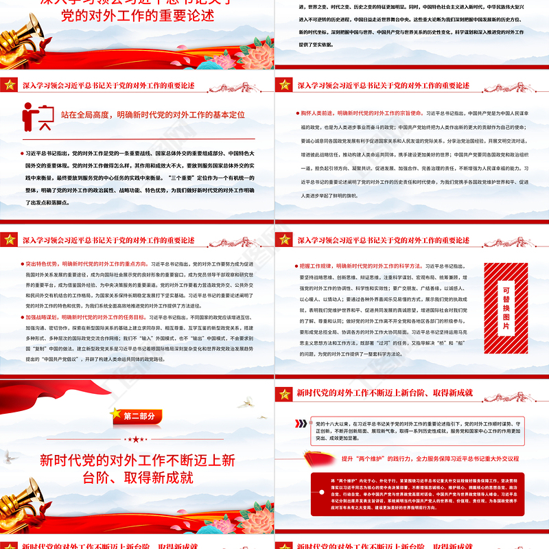 2022推動新時代黨的對外工作高質量發展PPT紅色精美風黨員干部學習教育專題黨課黨建課件 Array
