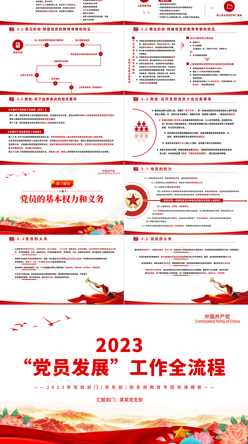 2023 “黨員發(fā)展”工作全流程——2023年黨政部門(mén)/黨支部/團(tuán)支部教育專題黨課模板——匯報(bào)部門(mén):某某黨支部