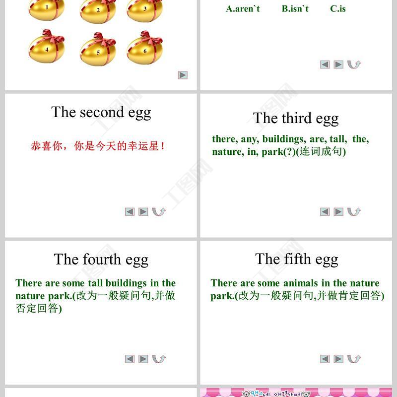 The fourth eggThere are some tall buildings in the nature park.(改為一般疑問(wèn)句,并做 否定回答)