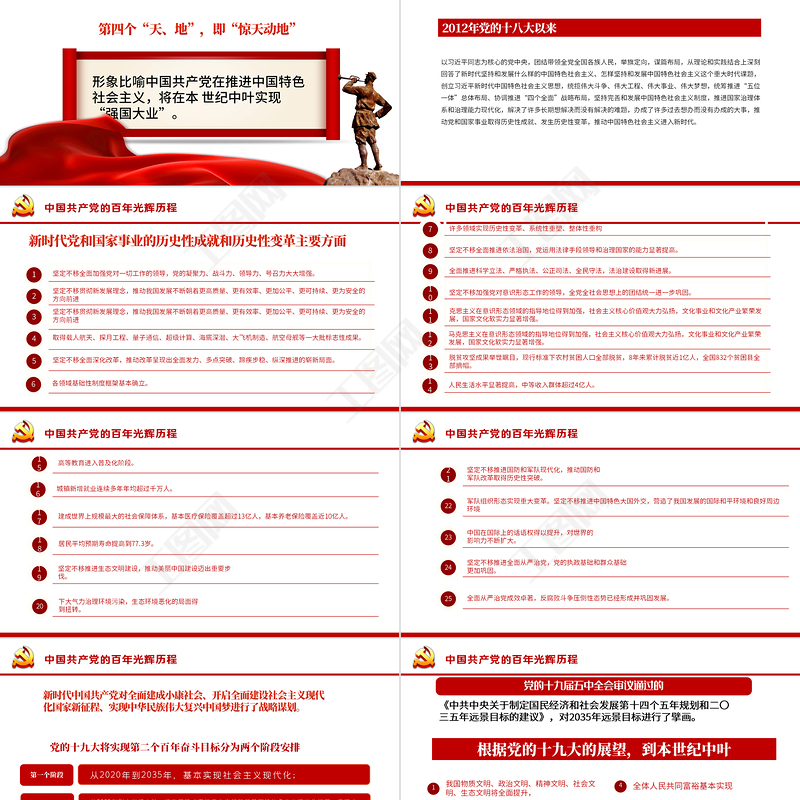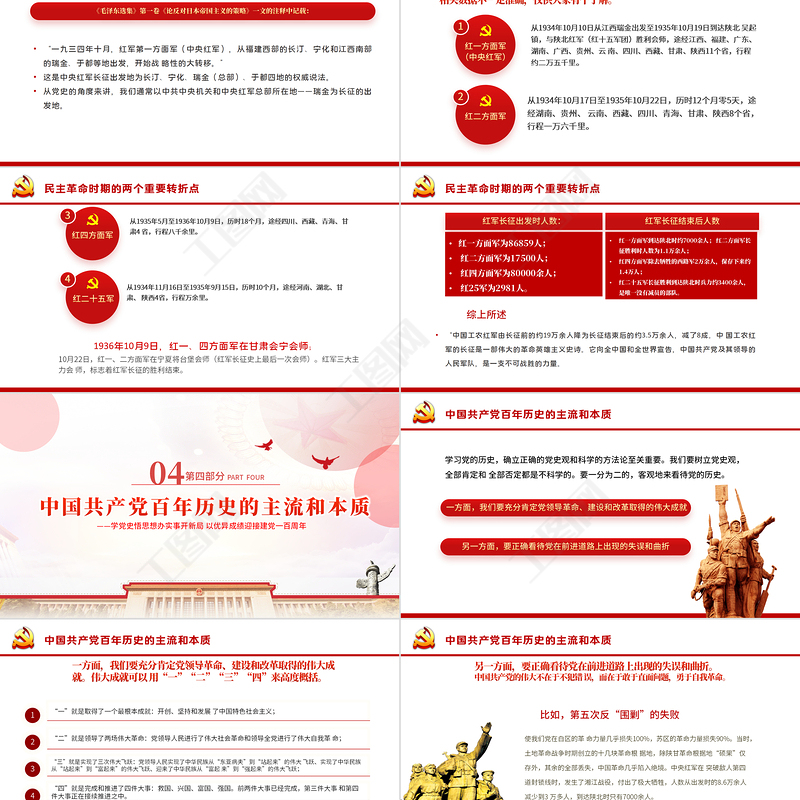 銘記奮斗歷程擔當歷史使命歷史PPT大氣黨建風中國共產黨的輝煌黨史黨課學習教育課件模板 Array