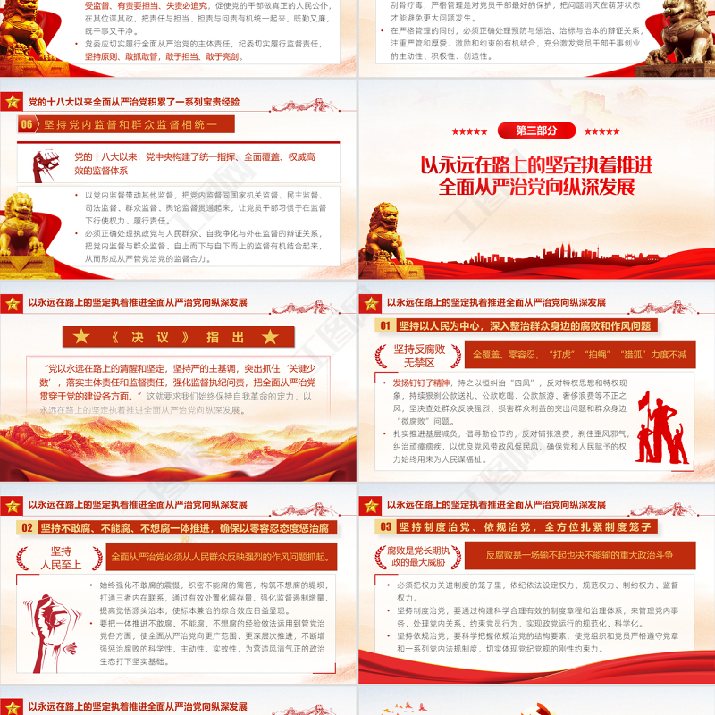 全面從嚴治黨永遠在路上PPT紅色黨建風2022年事業單位主題黨日黨課課件模板 Array