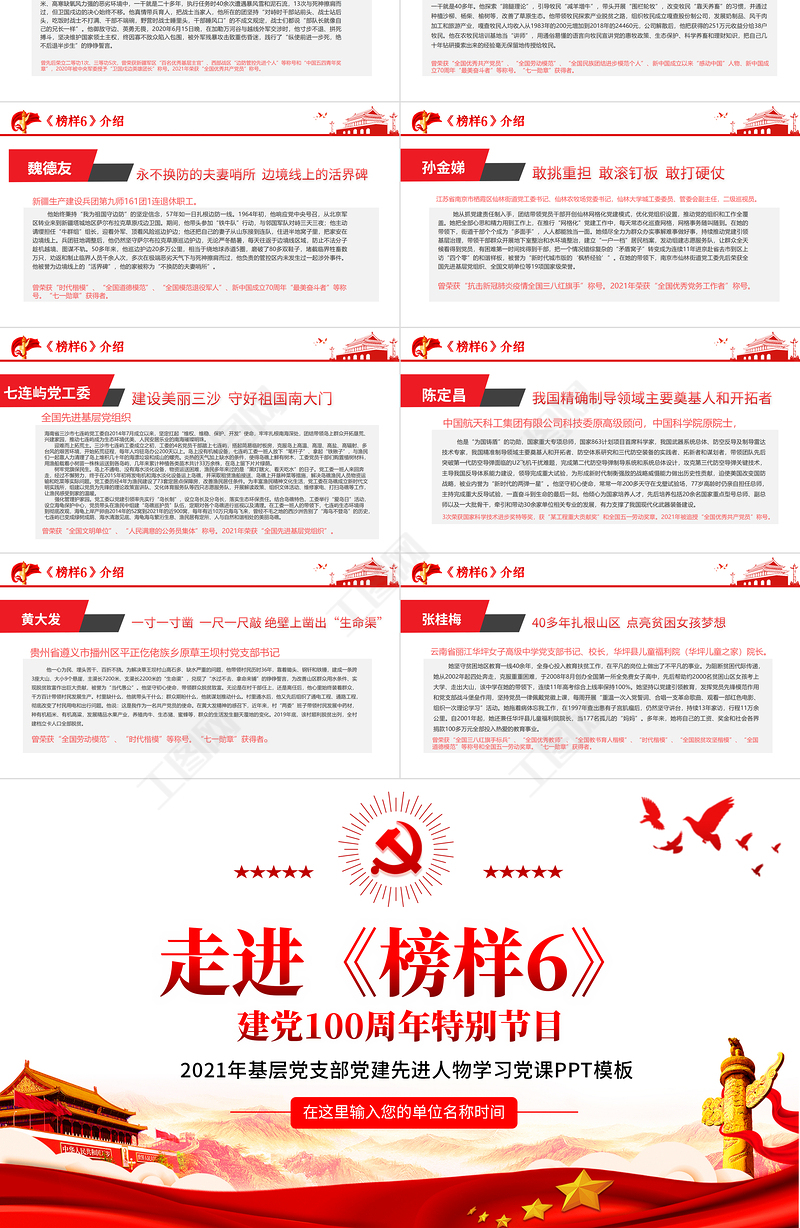 2021 進《榜樣6》 建黨100周年特別節目 PPT 基層黨支部 黨建先進人物 學習黨課 模板 Array