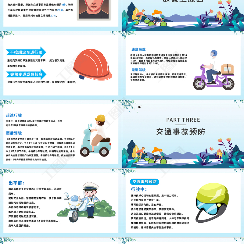 工圖網提供2022佩戴頭盔摩托車交通安全PPT卡通風守法規知禮讓安全文明出行課件模板供會員免費下載。更多精彩黨課PPT素材,盡在工圖網。