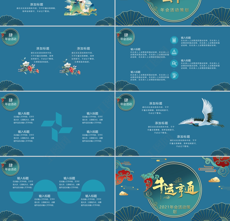 工圖網提供深藍復古國潮風牛運亨通2021年會活動策劃PPT模板供會員免費下載。更多精彩黨課PPT素材,盡在工圖網。