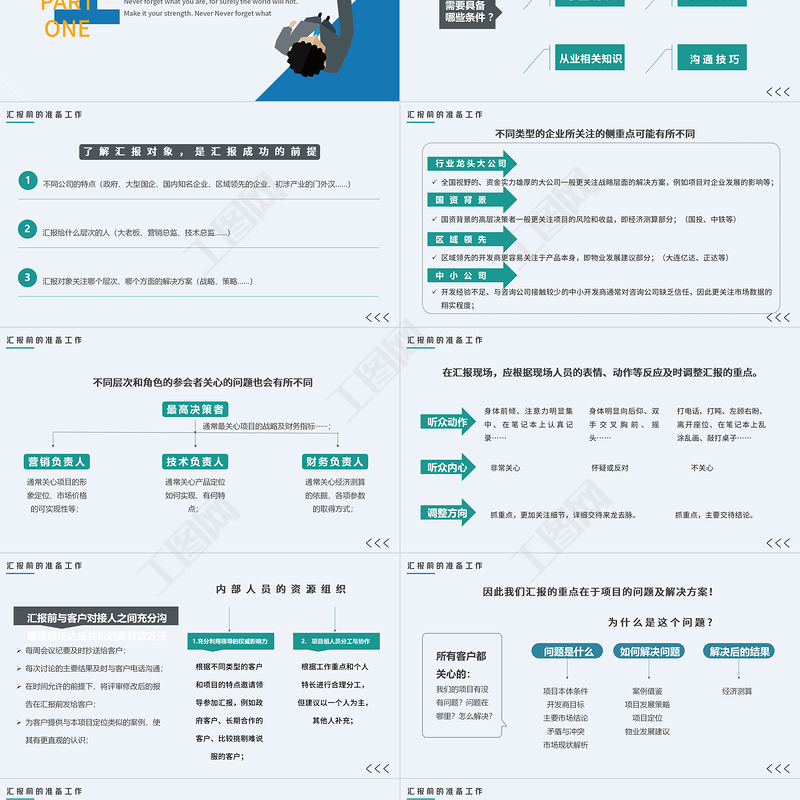 工圖網提供2022如何在客戶和領導面前做好匯報工作PPT商務風工作技巧培訓課件模板供會員免費下載。更多精彩黨課PPT素材,盡在工圖網。