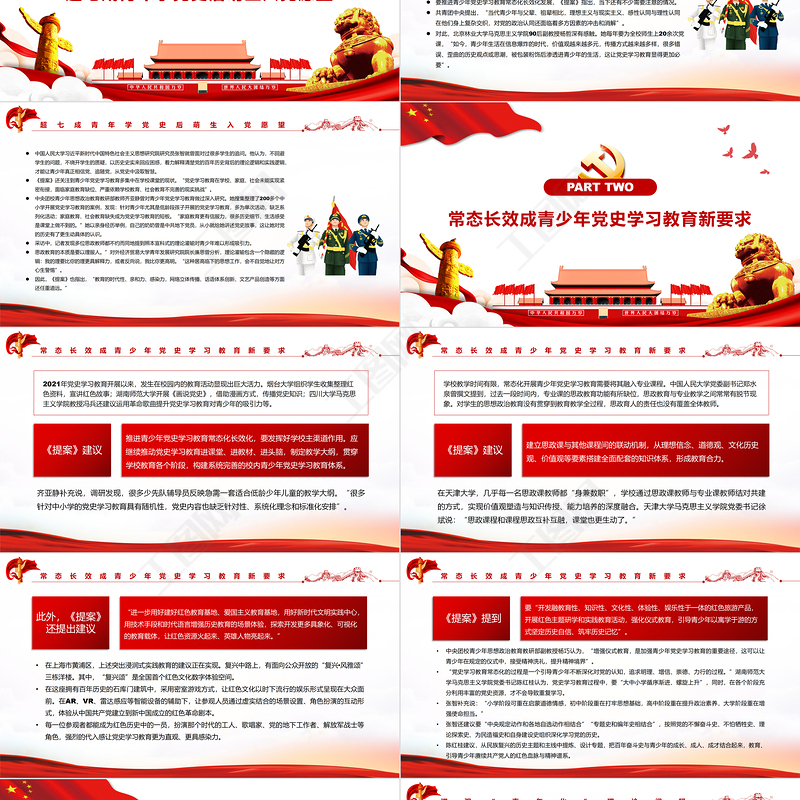 關于推進青少年黨史學習教育常態化長效化PPT紅色大氣風共青團專題課件模板 Array