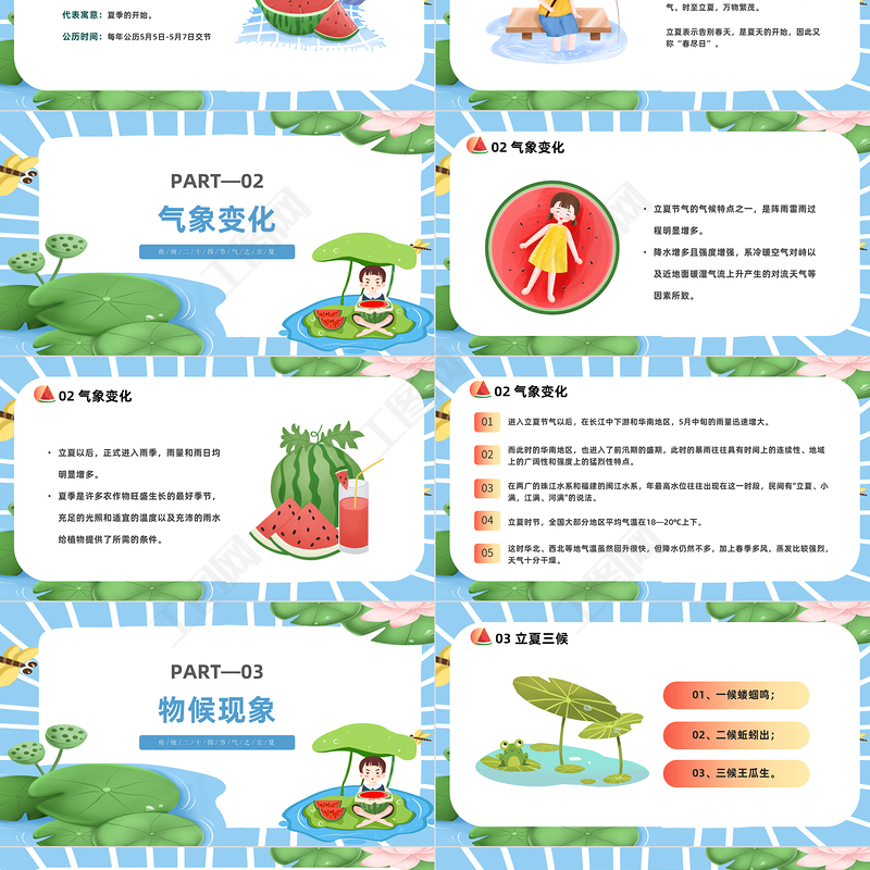 傳/統/二/十/四/節/氣/之/立/夏匯報人:辦圖網 時間:2023.04.27立夏,是二十四節氣中的第7個節氣,夏季的第一個節氣時至立夏,萬物繁茂