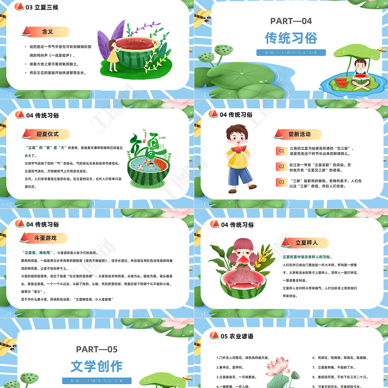 2023二十四節氣立夏PPT插畫風二十四節氣之立夏知識宣講課件模板下載